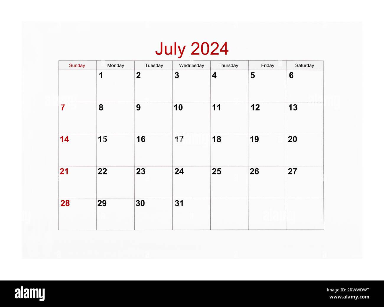 July calendar page Cut Out Stock Images & Pictures Page 2 Alamy